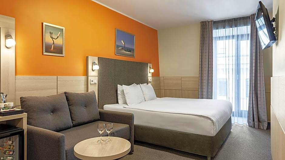 This room is located in the mansard floor and offers a city view. It comes with a mini-bar, flat screen TV and an air-conditioning.